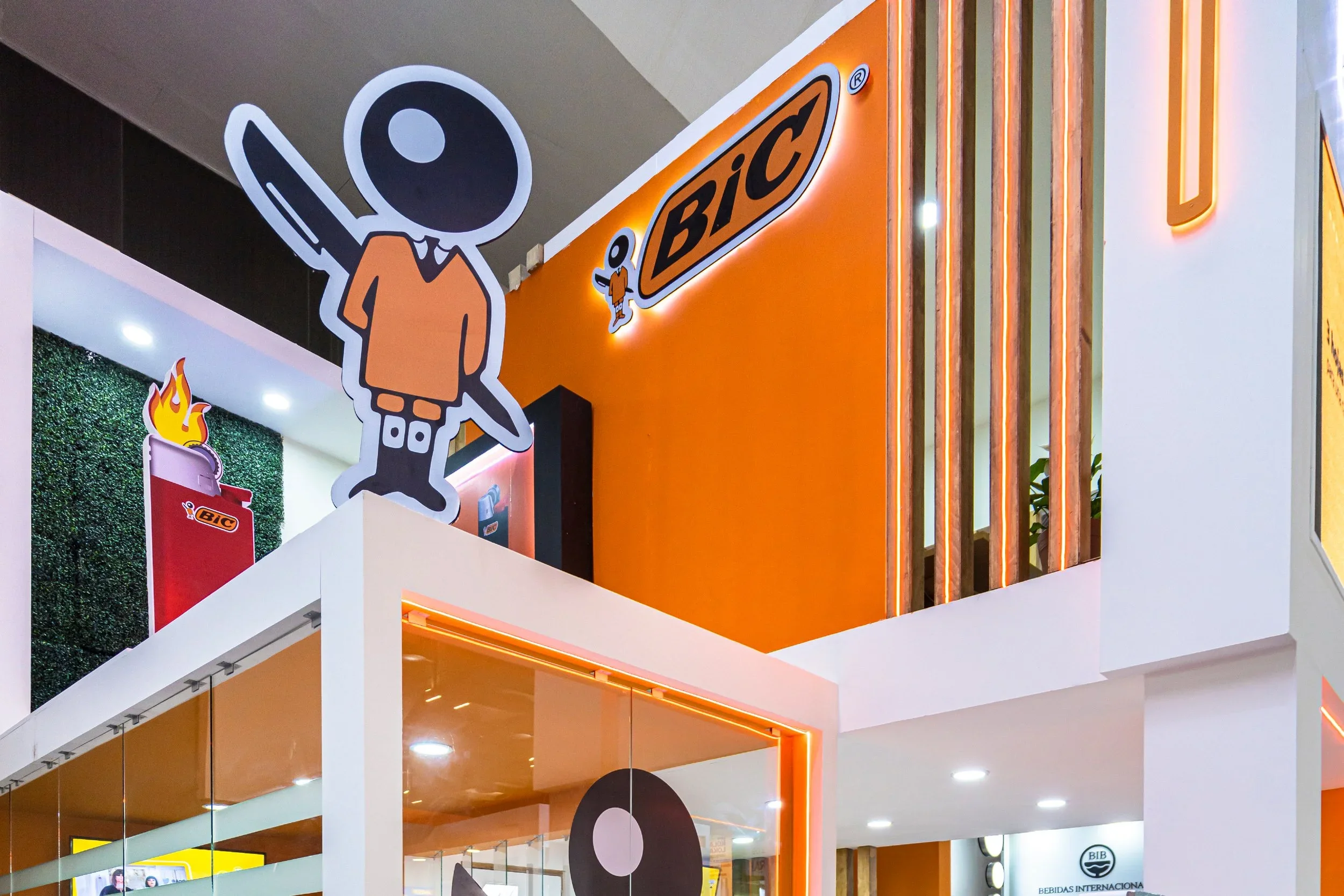 Bic is a French manufacturing corporation. It sells a world-leading brand of lighters and pens, and a competitive amount of shaving goods. BIC's objective this time was to gather all its clients after 3 years of social distancing in spaces that create a comfortable environment and experience for the reactivation of businesses. One of the requirements for the design was to reflect the vitality and strength of the brand, creating innovative spaces.