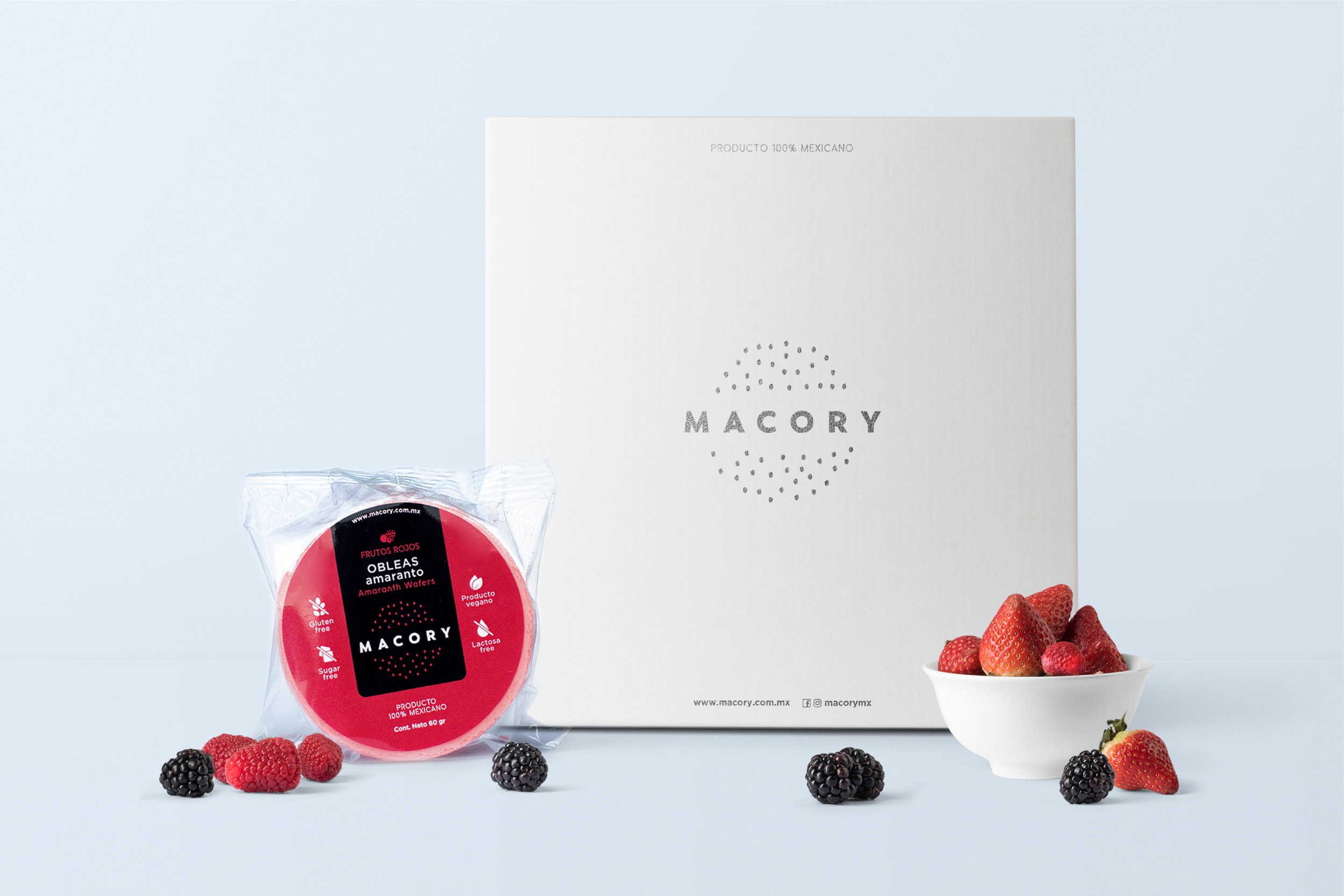 Macory is a Mexican company created to offer products with the highest quality with natural ingredients. They currently only sell amaranth wafers to the public, but they have plans to add more products to their catalog in the near future. With all this in mind, we developed a brand full of color that reflects not only the quality of their products, but also the variety of flavors and products that they will offer.